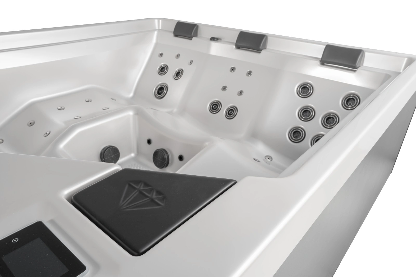 A generously proportioned hot tub that delivers the most complete massage experience in the Diamant collection. Diamant SPACE features two ergonomic loungers and several additional seats, designed to accommodate families or groups who value both comfort and versatility.