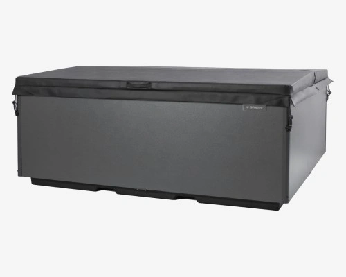 The thermal cover, crafted from premium black leatherette, provides excellent heat retention and protection, ensuring energy efficiency and a stylish finish for your hot tub.