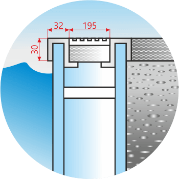 - levelled water surface (the water level reaches the top edge of the pool)